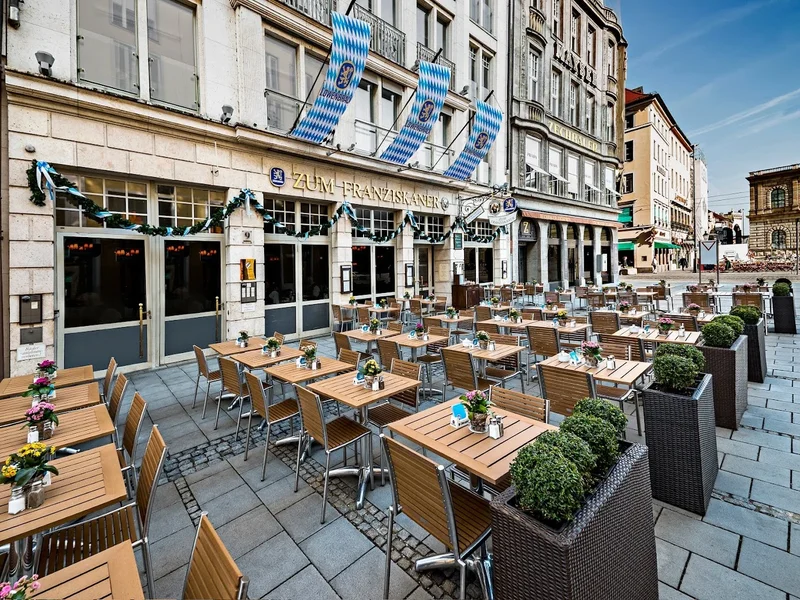 Zum Franziskaner ist ein traditionsreiches Restaurant in der Residenzstraße 9, 80333 München, das mit seiner gemütlichen Atmosphäre und bayerischer Gastfreundschaft begeistert. Die Speisekarte bietet eine Vielzahl von regionalen Spezialitäten, darunter deftige Schweinshaxen und frisch gezapftes Bier aus der Umgebung. Das Restaurant liegt in der Nähe der beeindruckenden Residenz München und der berühmten Münchner Altstadt, was es zu einem idealen Ort für Touristen und Einheimische macht. Die rustikale Einrichtung und der freundliche Service tragen dazu bei, dass sich die Gäste wie zu Hause fühlen. Zum Franziskaner ist der perfekte Ort, um die bayerische Küche in einem historischen Ambiente zu genießen.